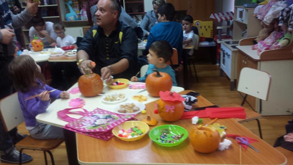 In fiecare seara, curtea gradinitei a fost luminata feeric de dovleceii haiosi si ingeniosi decupati in cadrul acestor ateliere.
